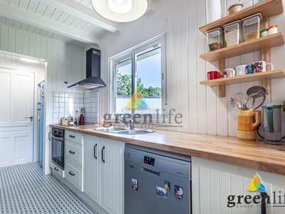 La cocina es independiente y funcional, con salida a la zona de entrada de vehículos y aparcamiento privado. Además, la propiedad incluye garaje cerrado, proporcionando comodidad y seguridad.
